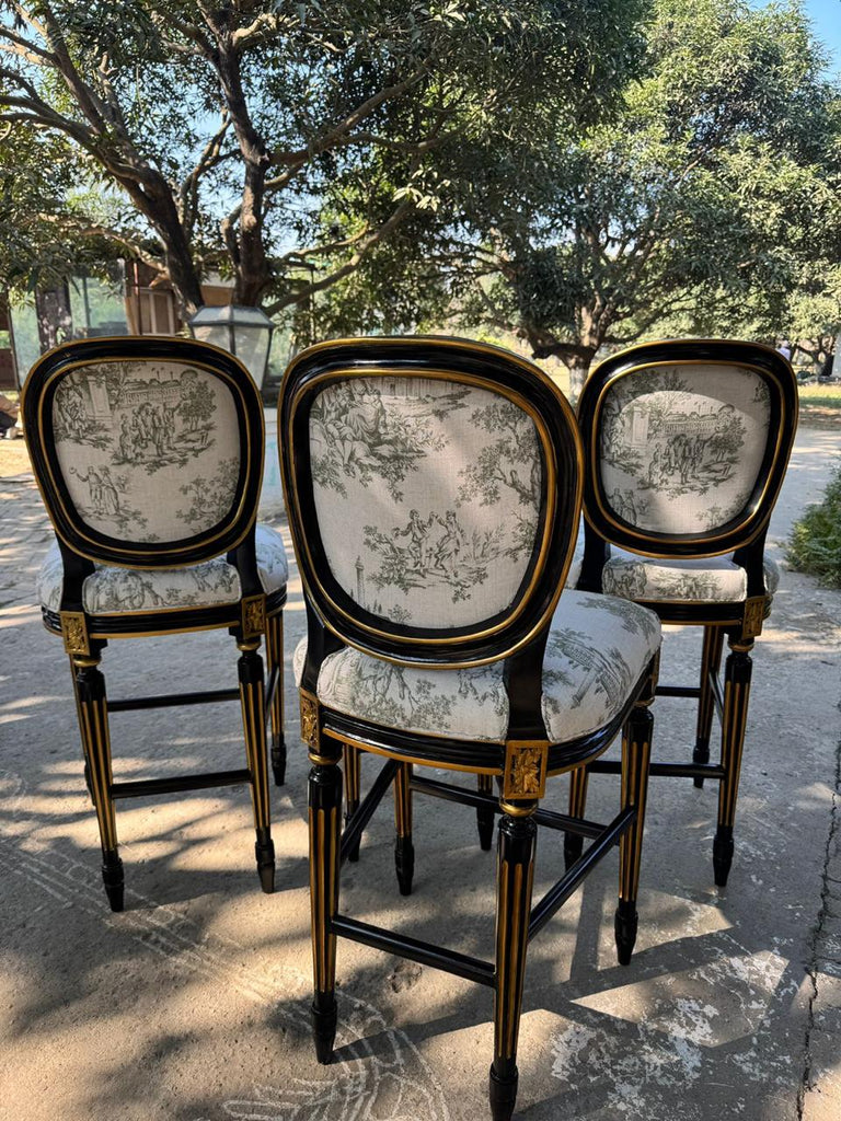 Pictured are these beautiful Louis XVI bar chairs- classic, elegant and simply delightful.