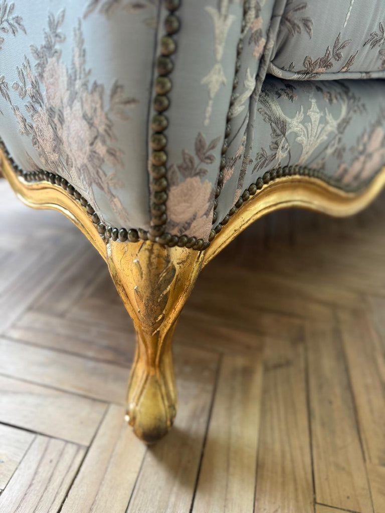 The elegant Louis XV silhouette, the beautiful grey upholstery, the subtle gold leafing~